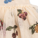 Rochia pentru fete Yvonne de la Konges Slojd este o opțiune strălucitoare, inspirată din basme, pentru micile zâne care adoră să danseze și să se rotească.