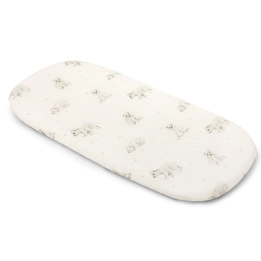 Cearșaful de cărucior Memi are un cordon elastic pentru a preveni alunecarea acestuia de pe saltea.