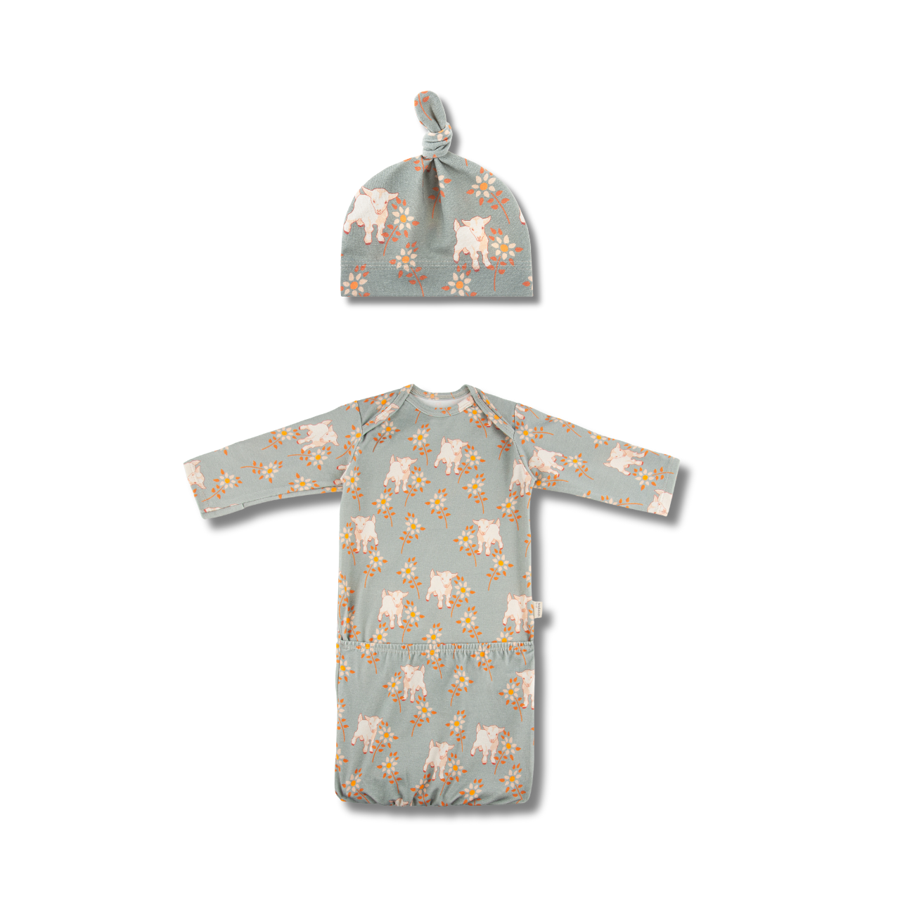 Body pentru bebeluși Kangaroo cu șapcă Vintage Animals Sky Blue de la Sleepee.