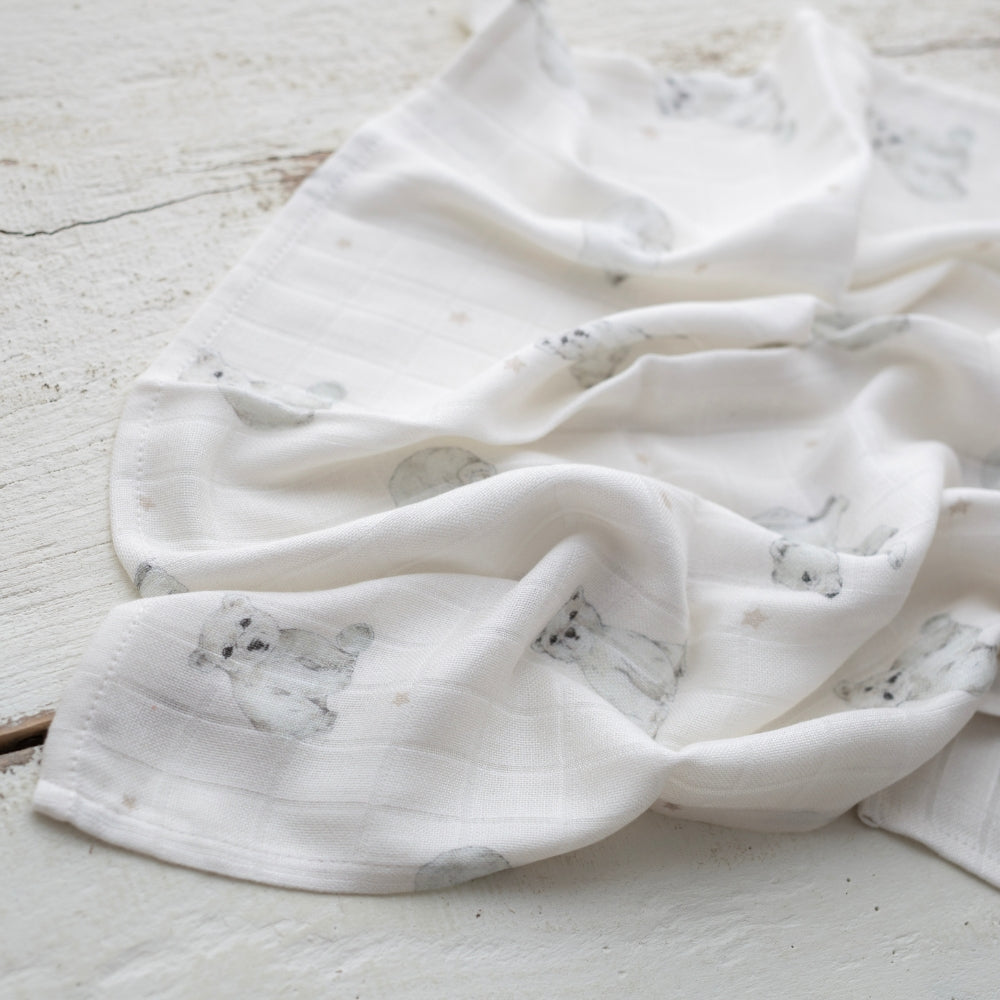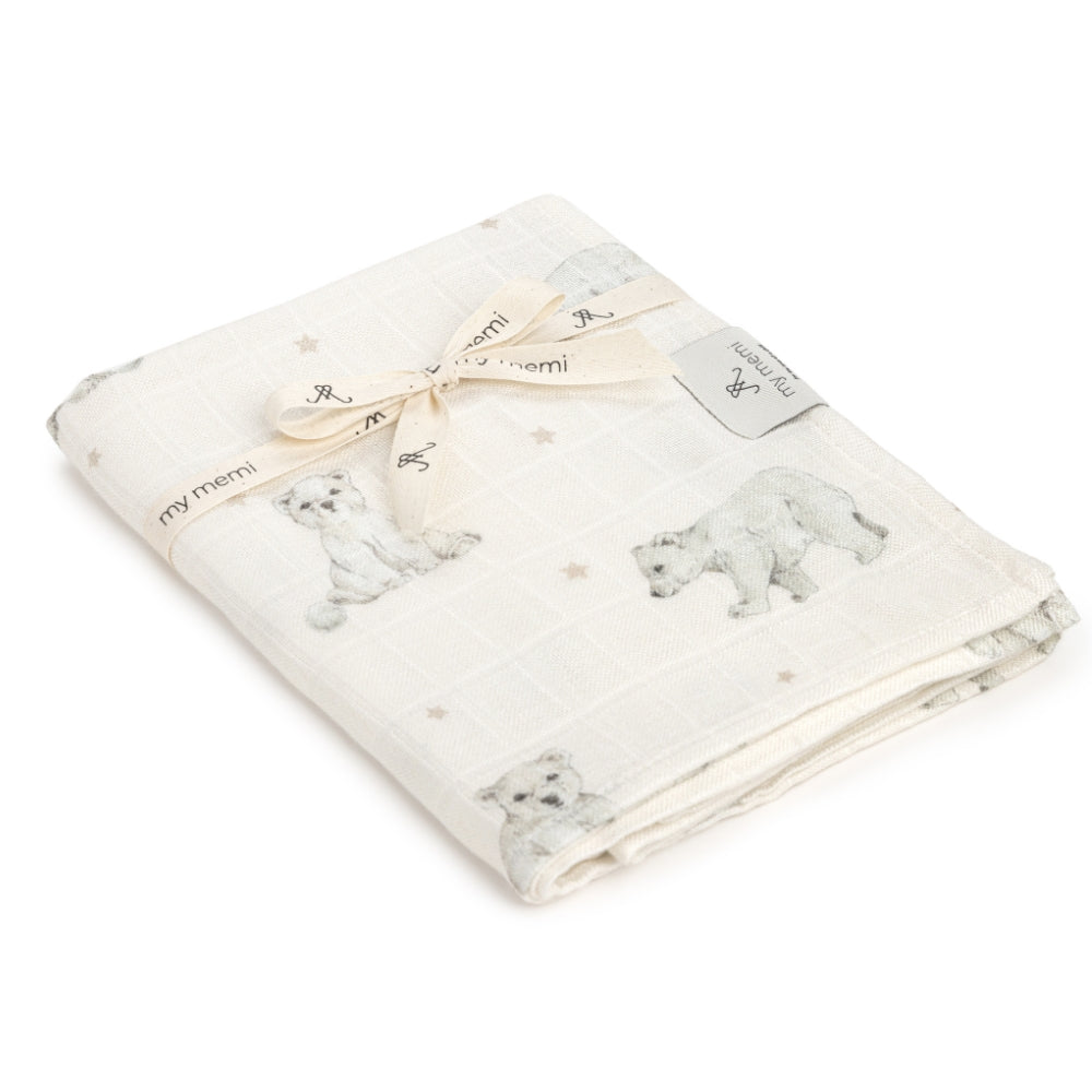 Învelitoarea din muselină de bambus 120x120 cm little bears by Memi este extrem de moale și plăcută la atingere.