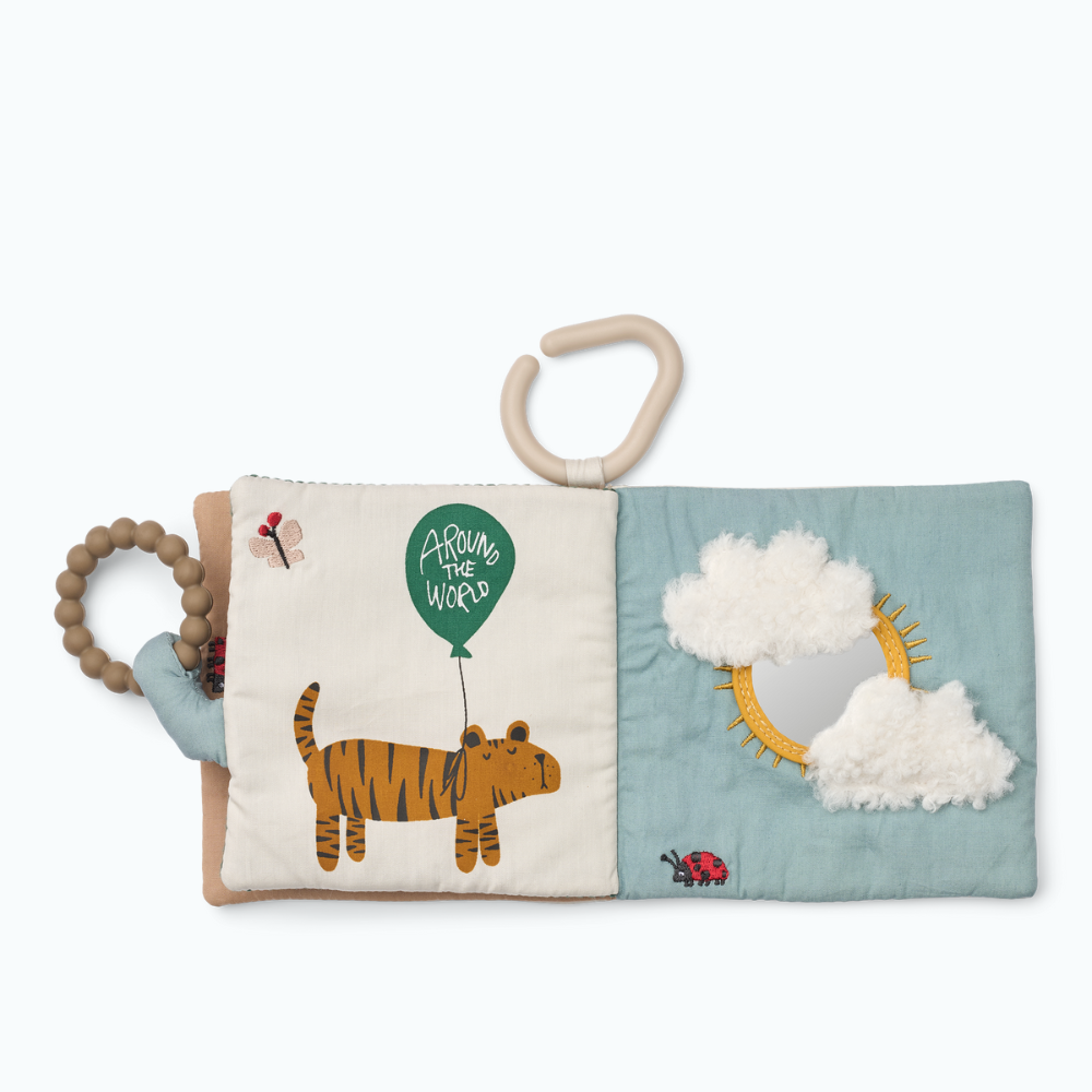 Cărticica este însoțită de un teether din silicon, care oferă ușurare în timpul dentiției și este întotdeauna la îndemână.