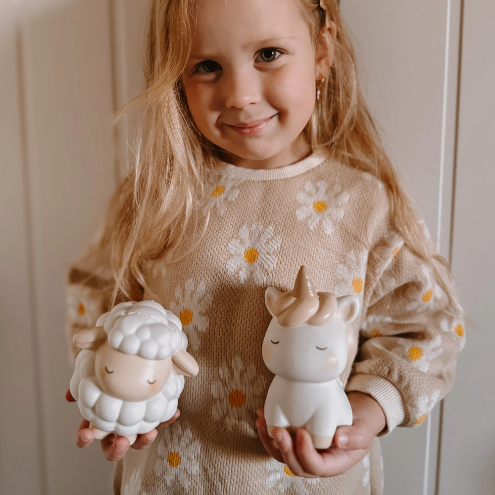 Colecția Mrs Ertha include patru figurine adorabile: o oaie, un unicorn, un arici și un iepure.