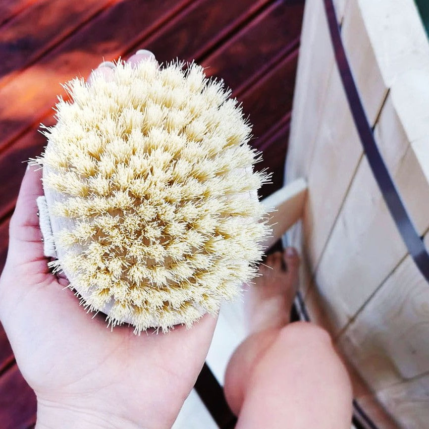 O fantastică perie de masaj uscată Tampico cu peri de cactus de agave.