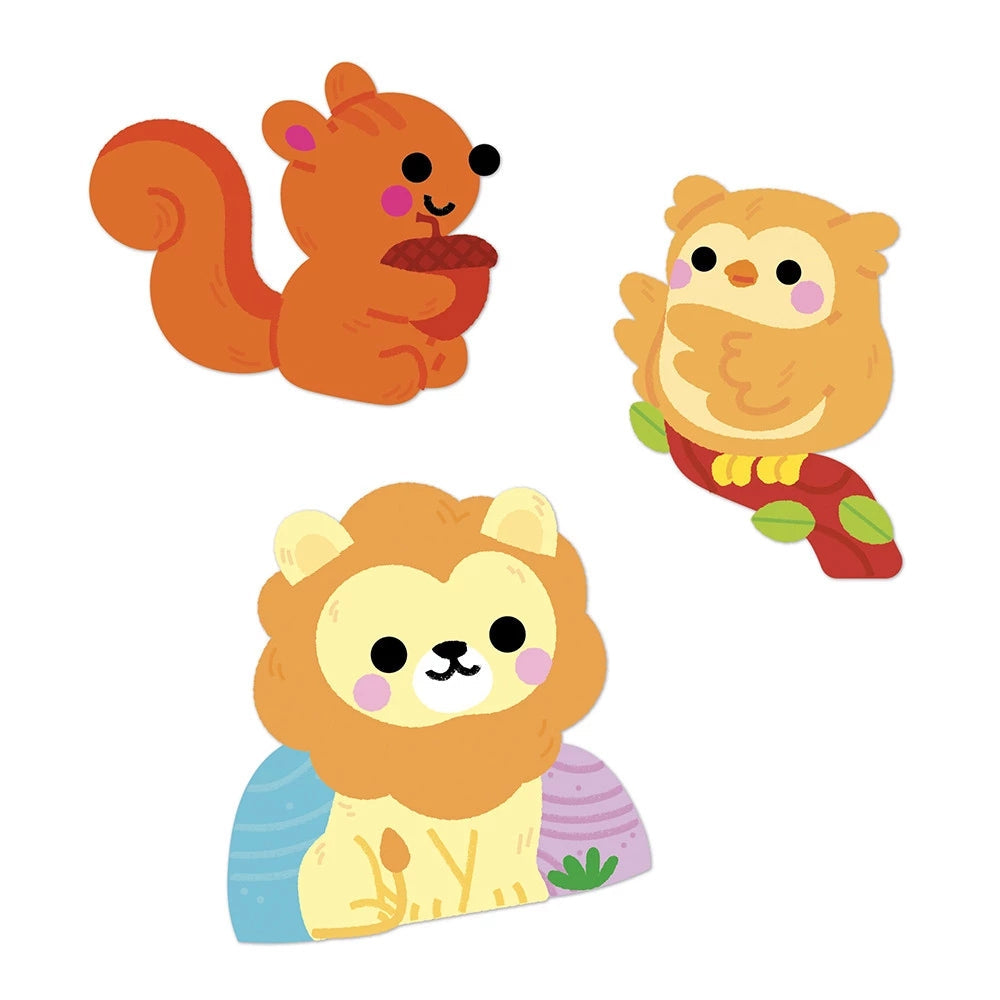 Până la 50 de autocolante mari cu tematică animală așteaptă în acest adorabil plic Janod în formă de vulpe, încurajând crearea primelor lucrări de artă și a unor scene distractive.