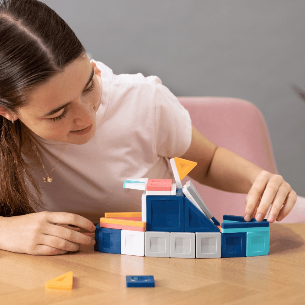 Magneții cu autopoziționare "pocnesc" plăcut pentru satisfacție senzorială și, de asemenea, fac din Magnetic Blocks o jucărie ideală pentru fidgeting și explorare timp de ore.