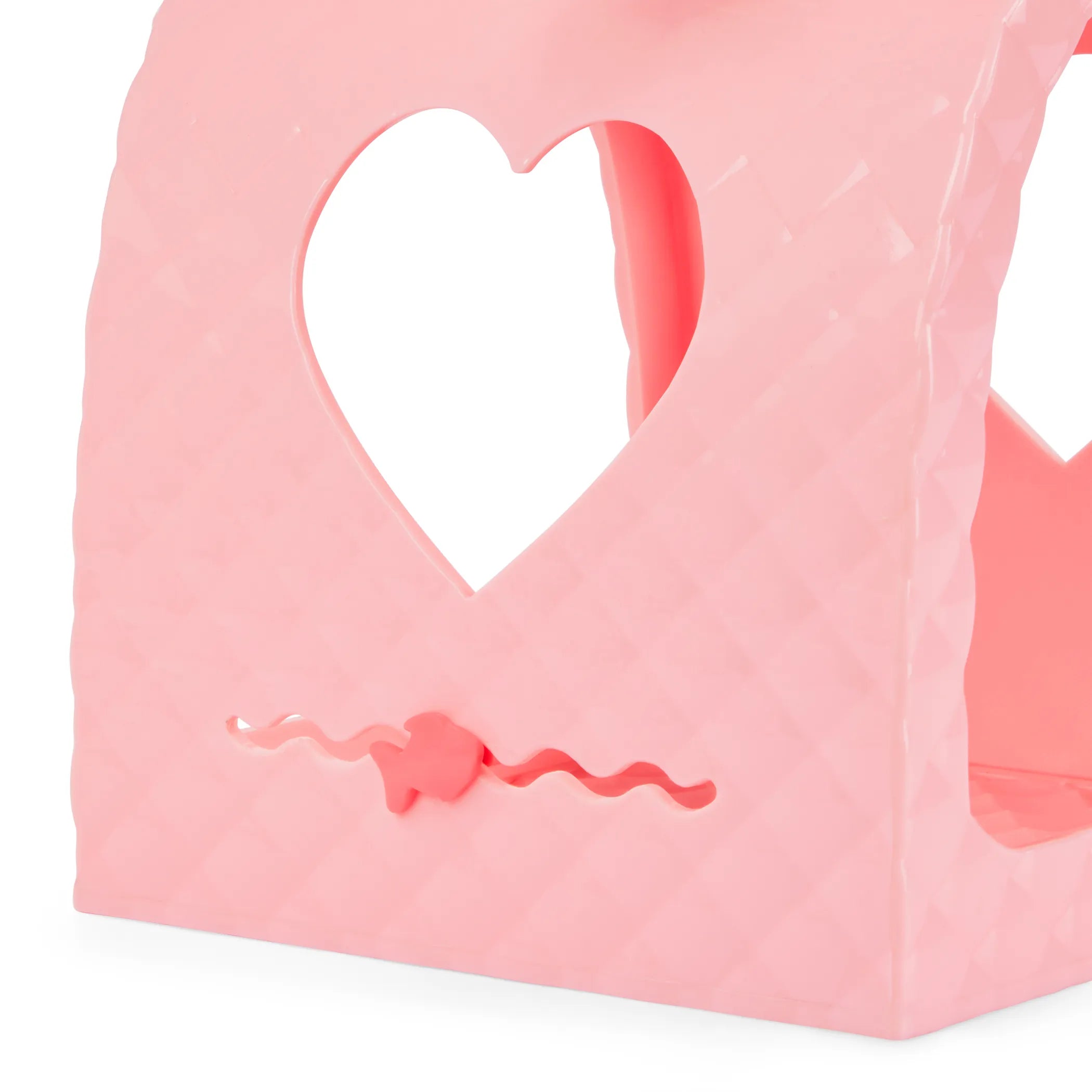Casa roz, în formă de inimă ajurată, stâlpul de zgâriat și patul moale pot fi combinate pentru a forma un turn cu două niveluri, făcând din pisicuța cu casă centrul jocului și al povestirilor.