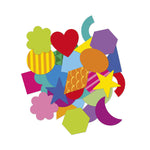 Setul de abțibilduri Figuri Geometrice de la brandul francez Janod este format din până la 300 de abțibilduri reutilizabile, tăiate cu grijă.