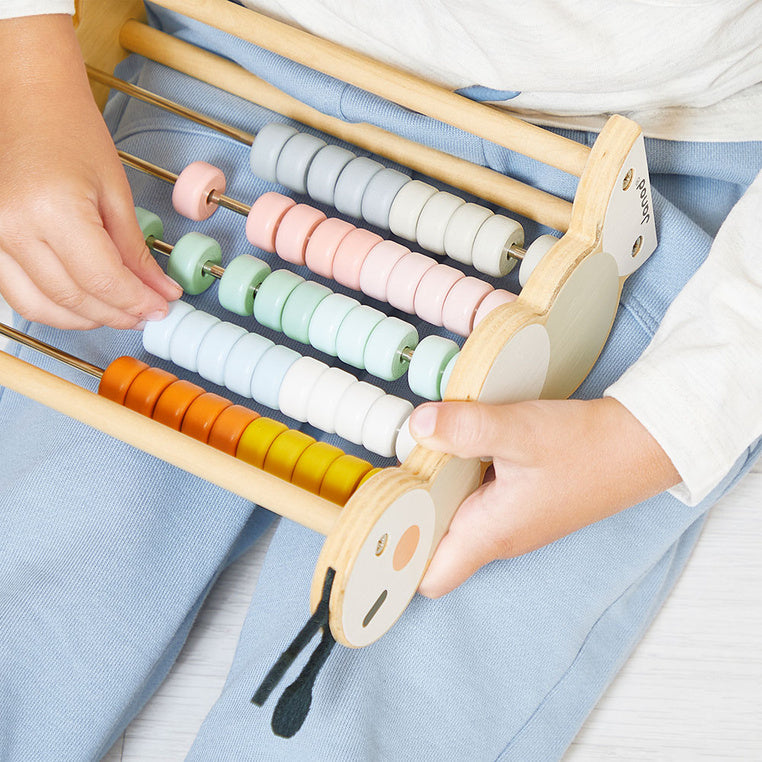 Roata de numărat de la Janod din seria Sweet Cocoon este concepută pentru copiii cărora le place să exploreze lumea prin joacă.