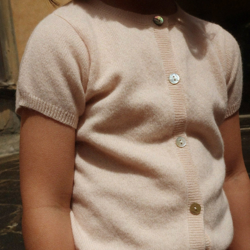 Konges Slojd Cardigan cu mânecă scurtă din lână Basi Buttercream pentru fete