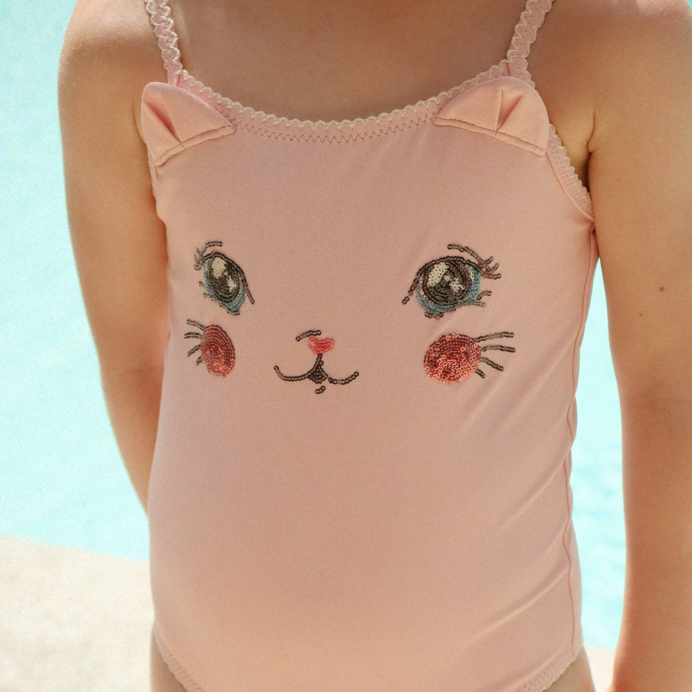 Konges Slojd costum de baie dintr-o singură piesă pentru fete Kitty Powder Pink