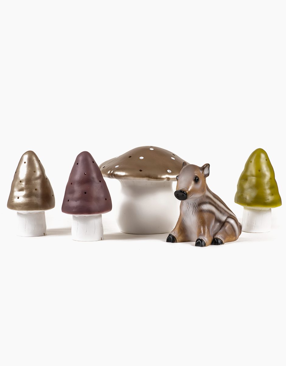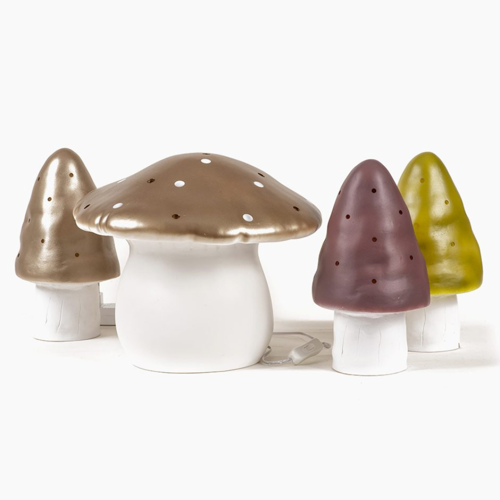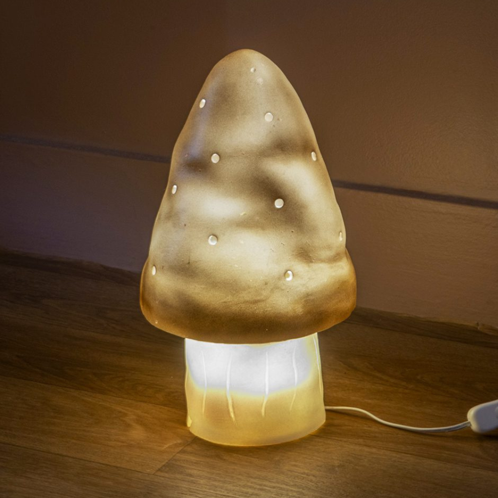 Lampa de noptieră în formă de ciupercă de la Minikane este un accent fermecător pentru a adăuga confort colțului unui copil.