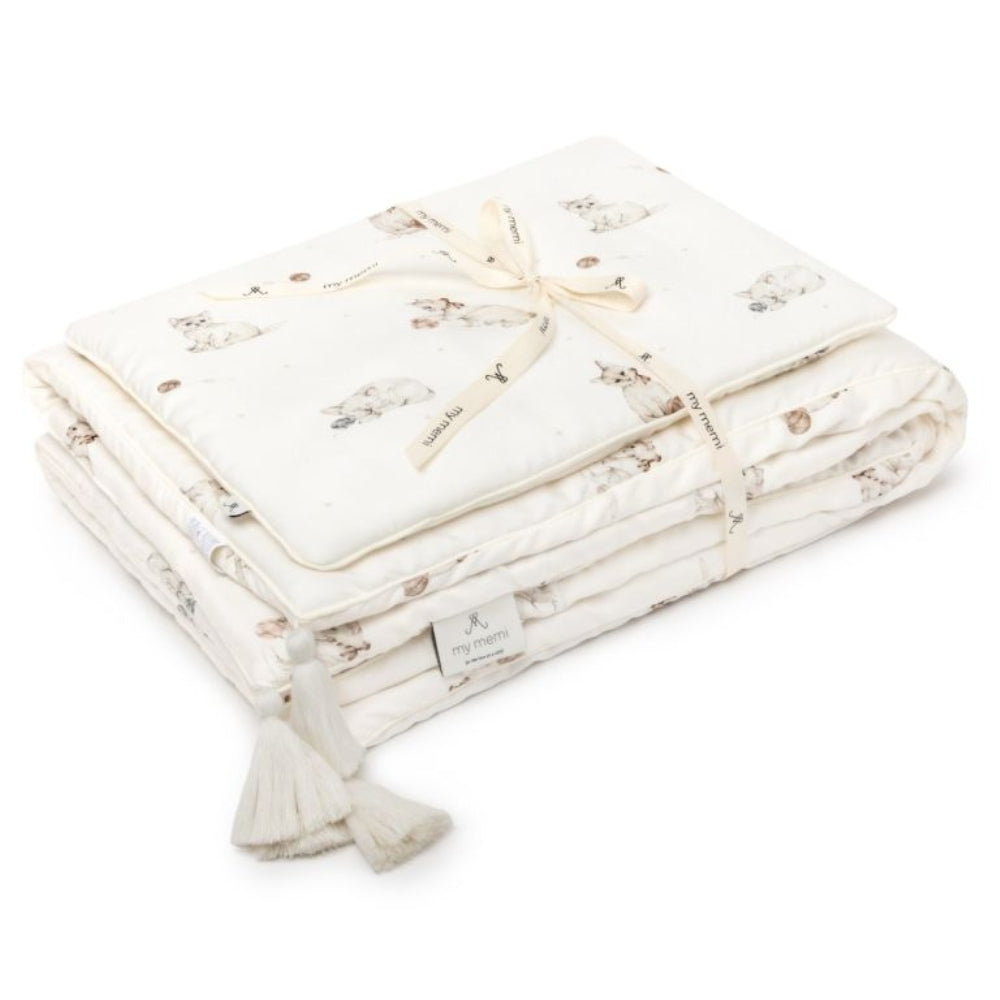 Vă prezentăm un set de lenjerie de pat pentru bebeluși extrem de plăcută la atingere și ușoară pe tot parcursul anului cu umplutură de la Memi.