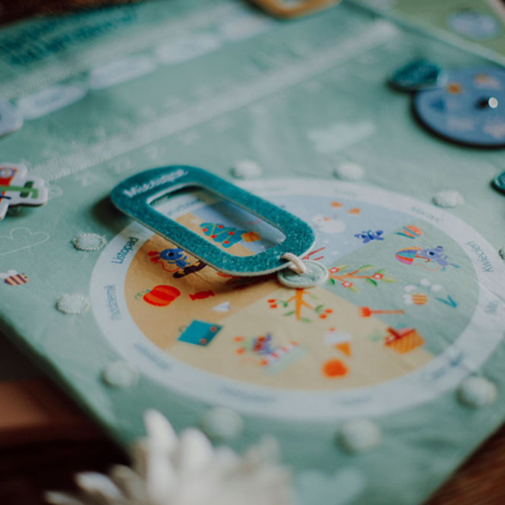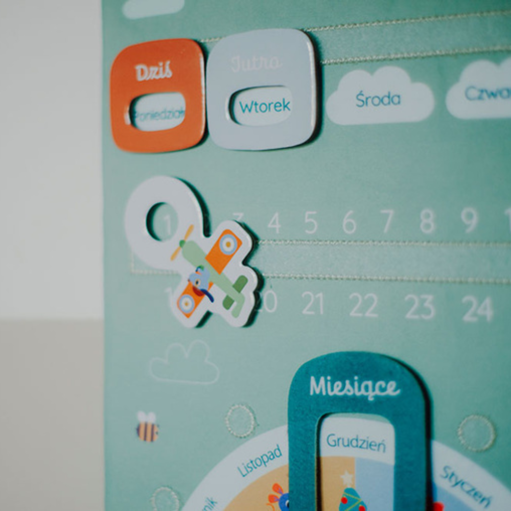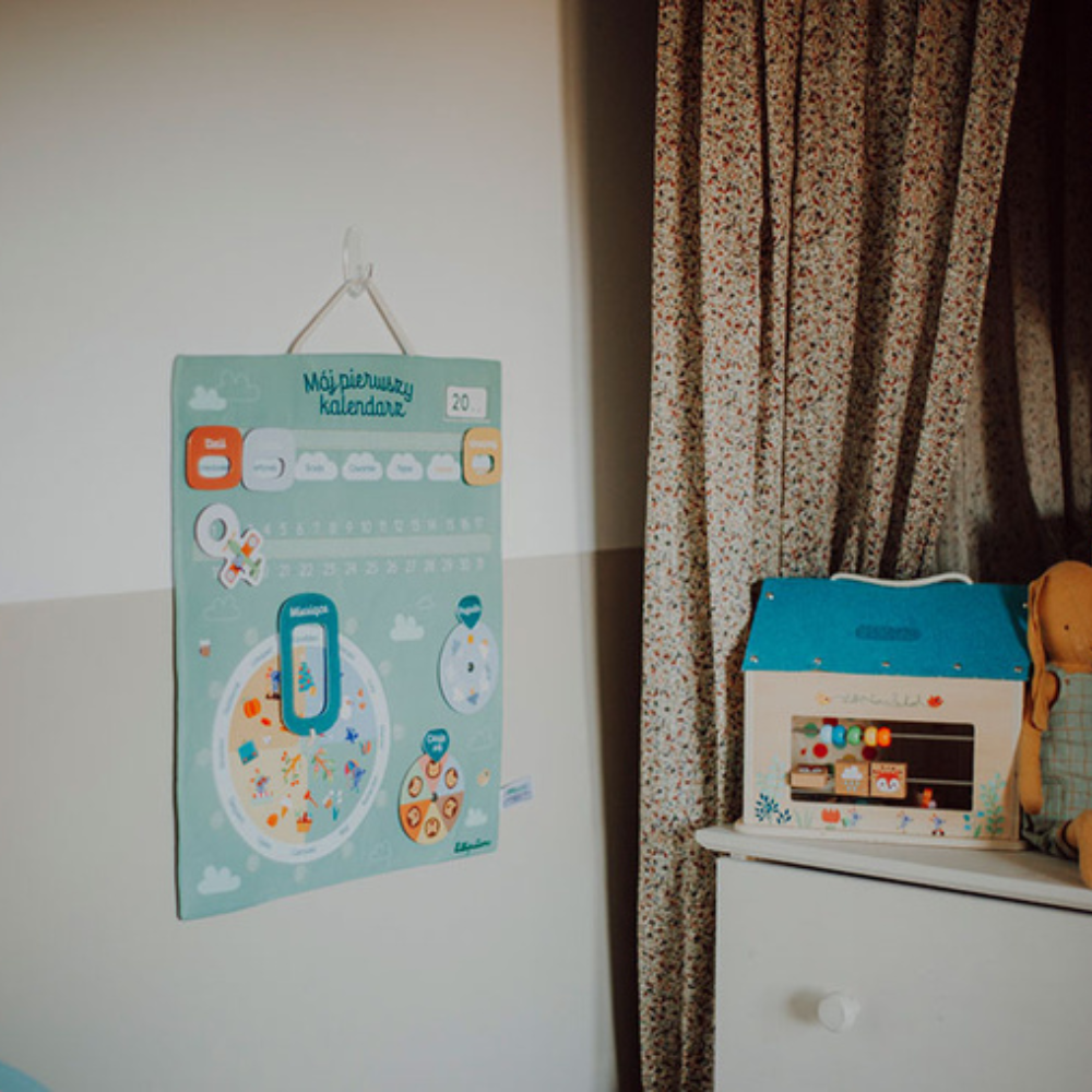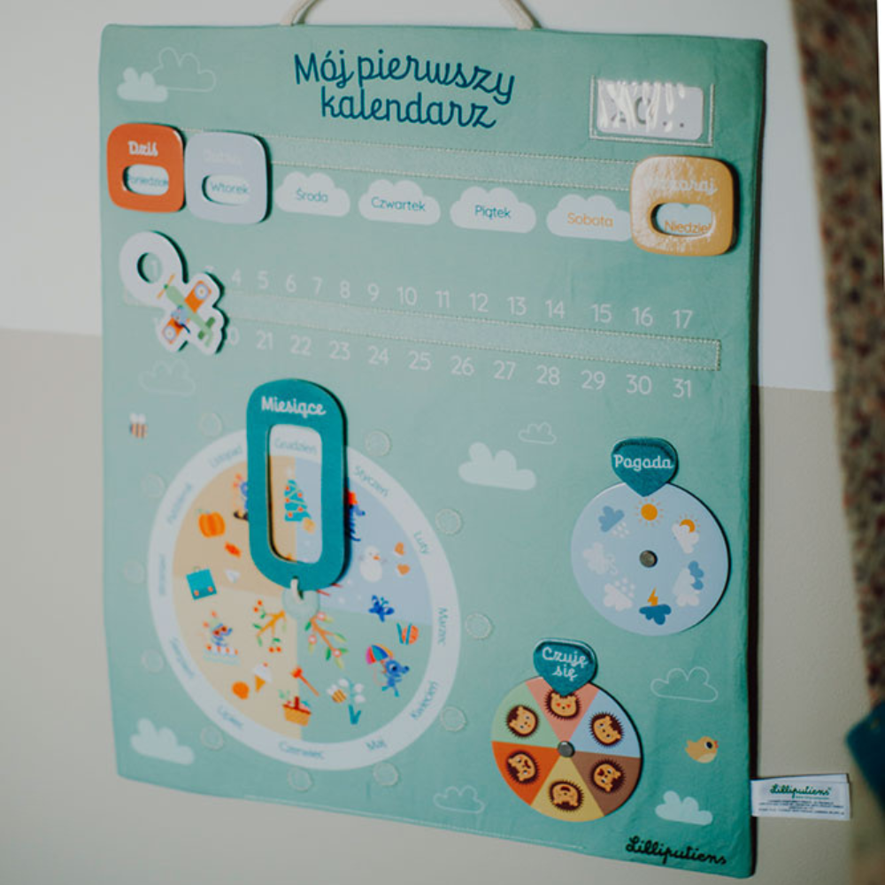 Această tablă de activități moale în versiunea în limba poloneză de la Lilliputiens vă va ajuta copilul să se obișnuiască cu conceptul de timp și cu ritualurile zilnice - de la zilele săptămânii, prin anotimpuri, până la schimbarea vremii și a emoțiilor.