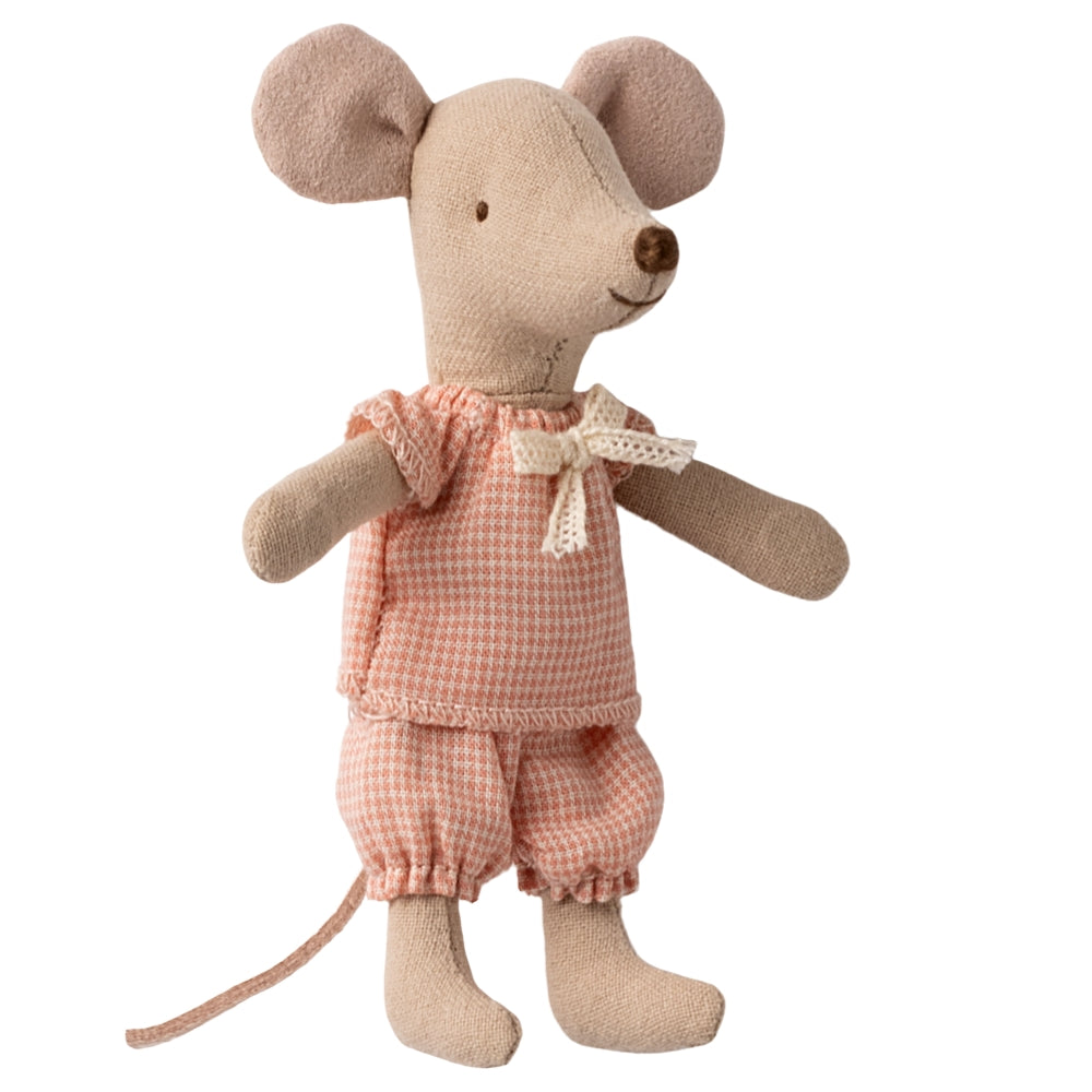 Șoricelul de la Maileg este o jucărie adorabilă care încântă copiii și adulții de ani de zile. Proiectat cu atenție la fiecare detaliu, îmbrăcat în țesături moi și învelit în așternut moale într-o cutie de chibrituri colorată, el devine un tovarăș de joacă și de somn fidel.