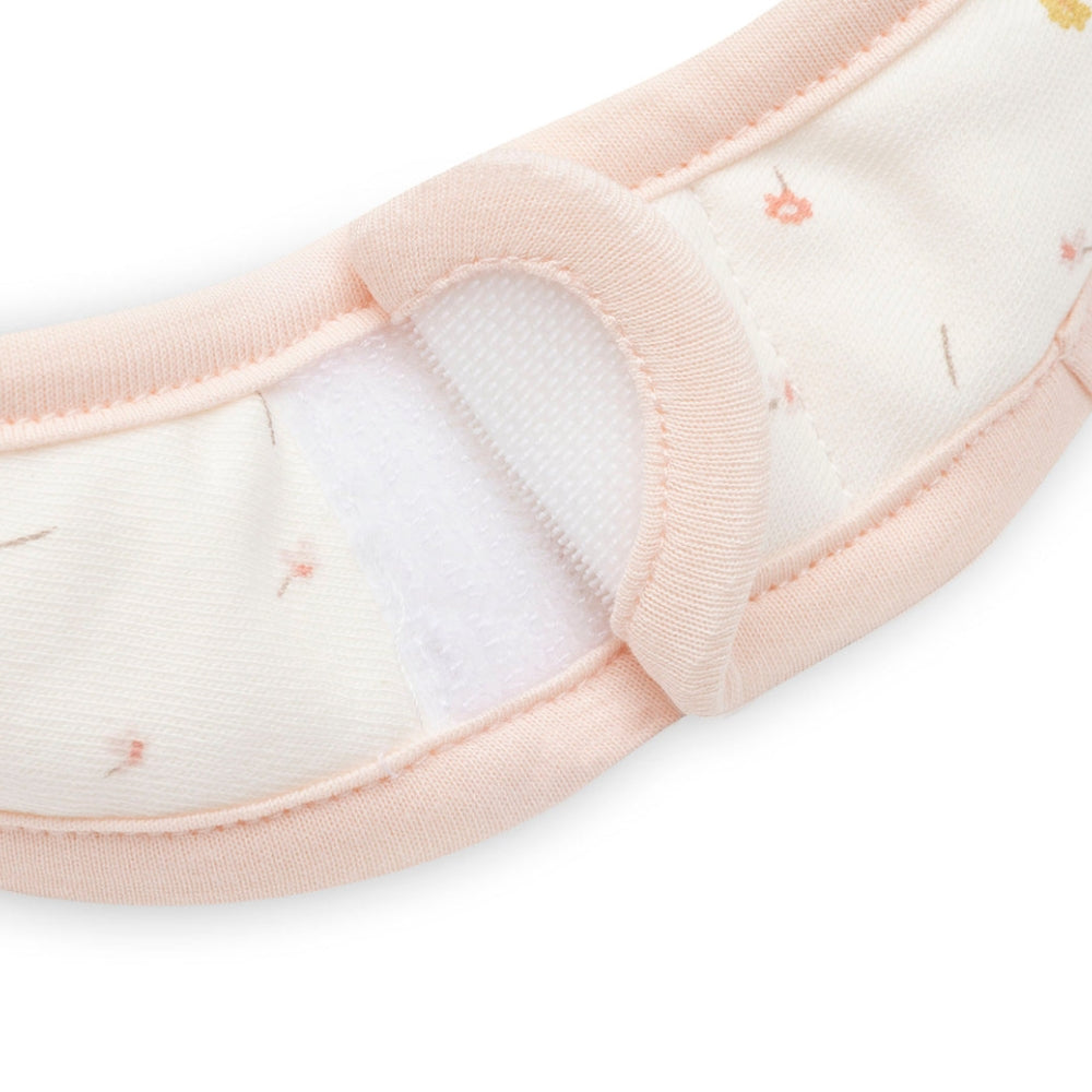 Marca Jollein a prevăzut o închidere convenabilă cu Velcro, care permite ca bavețica să fie pusă și scoasă rapid.