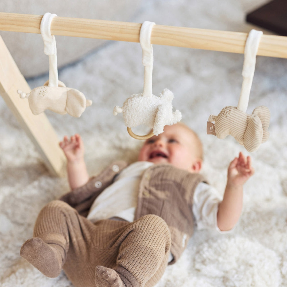 Jucăriile cu bentiță Jollein sunt un set adorabil de trei pui de elefant care captează atenția micuțului dvs. cu texturi și detalii diferite.