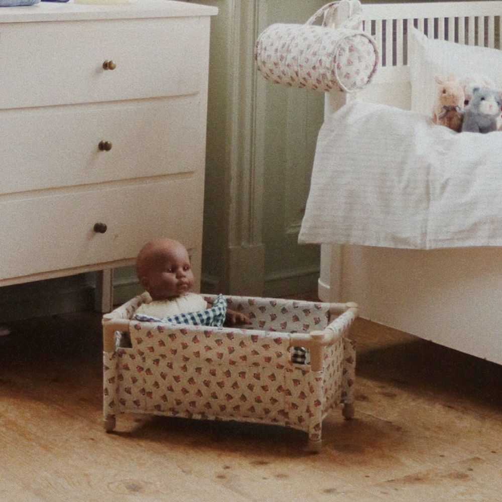 Pătuț pentru păpuși - pătuț de călătorie pliabil de la Konges Slojd.
