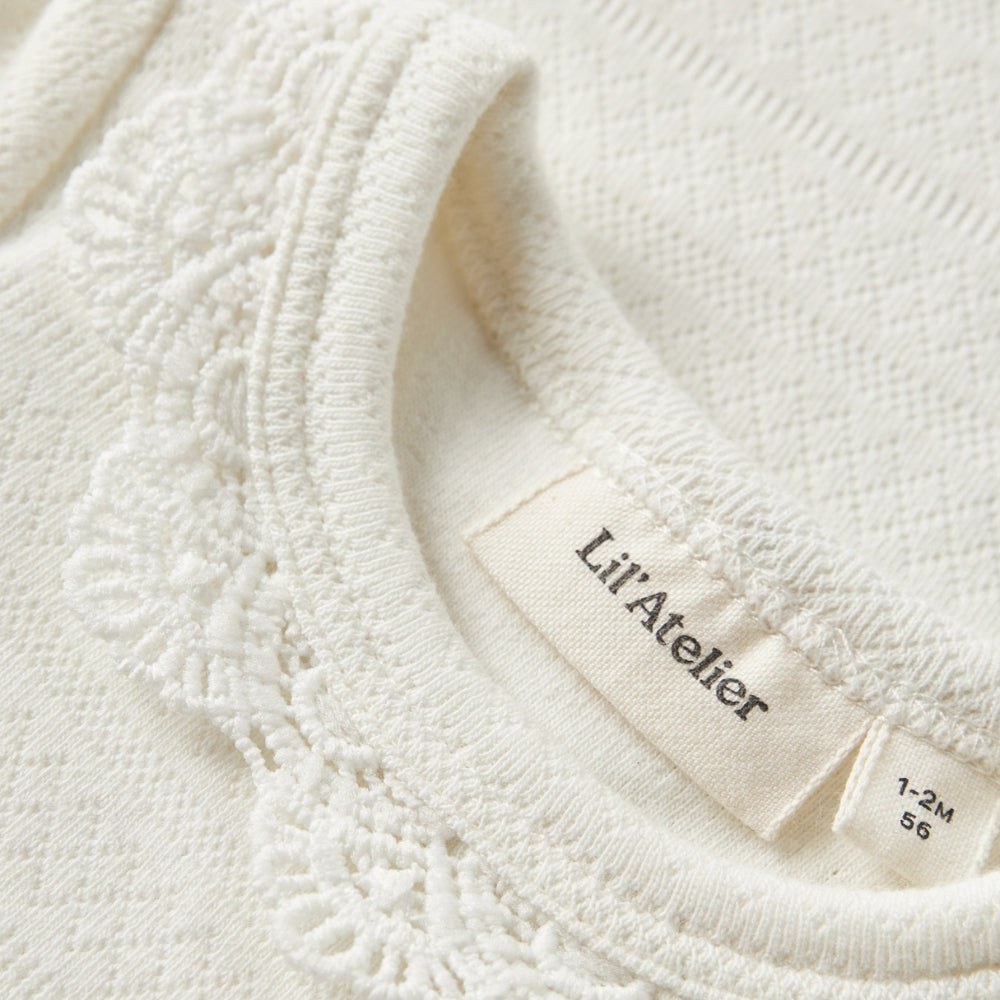 Body-urile pentru bebeluși de la Lil' Atelier combină confortul, calitatea și stilul atemporal. Modelul delicat cu nervuri în nuanțe de alb le conferă un farmec subtil, în timp ce talia elastică asigură o libertate completă de mișcare pentru joaca și relaxarea de zi cu zi.