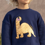 Acest hanorac pentru copii de la Mini Rodini este o piesă vestimentară caldă și elegantă pe care orice mic iubitor de dinozauri o va adora.