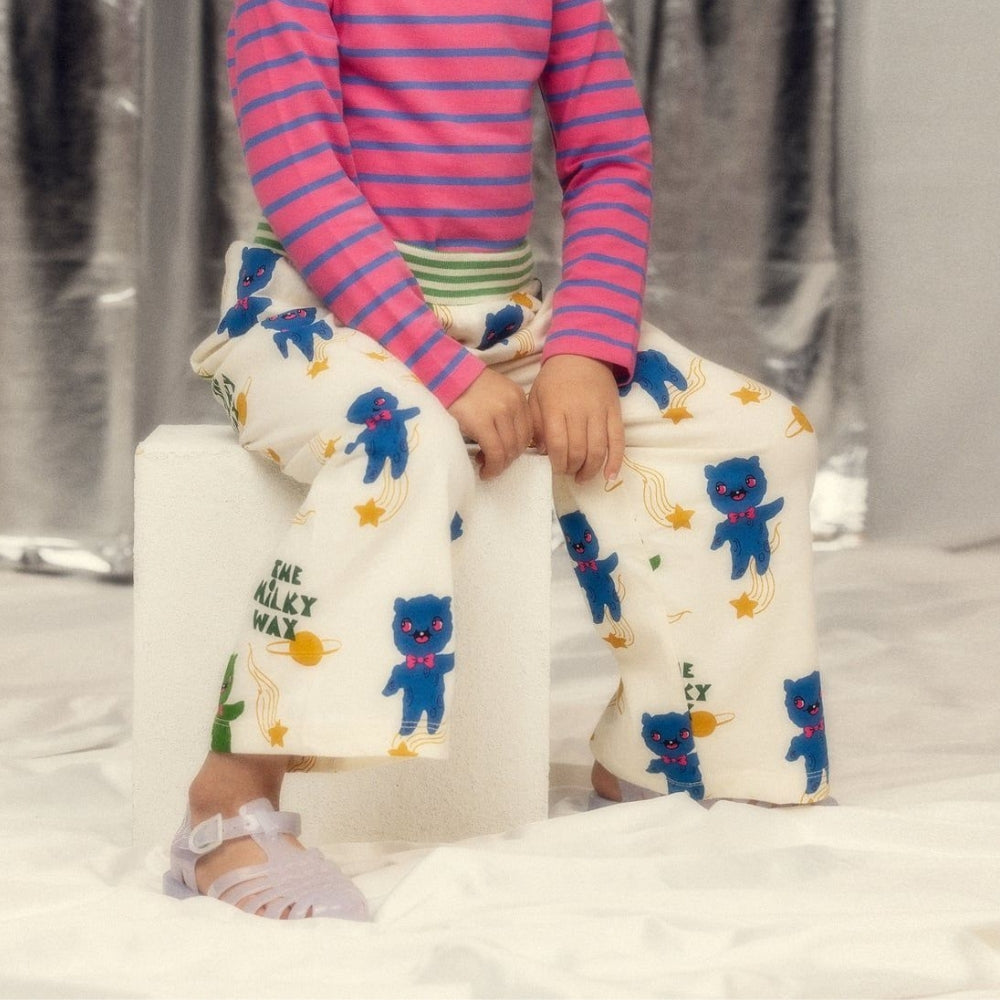 Acești pantaloni pentru copii Mini Rodini sunt perfecți pentru grădiniță, plimbări și ieșiri când libertatea de mișcare este importantă.