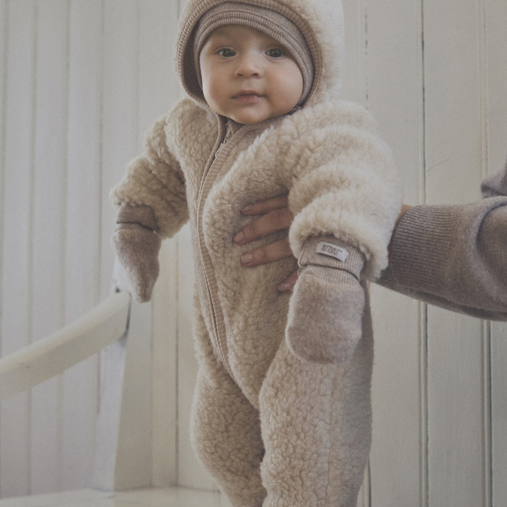 Salopetă pentru bebeluși din lână Teddy Cement de la Huttelihut.