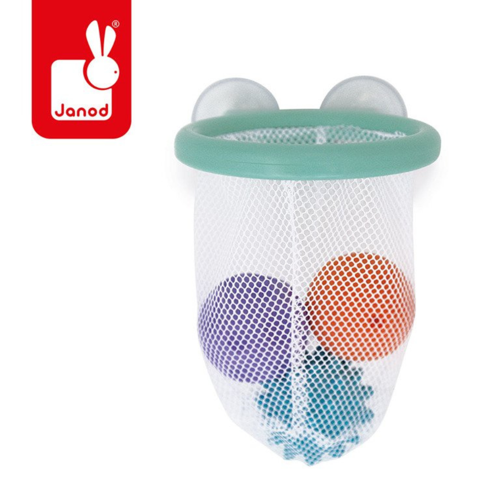 Janod Baschet coș joc de baie cu ventuze + 3 mingi 12 m+