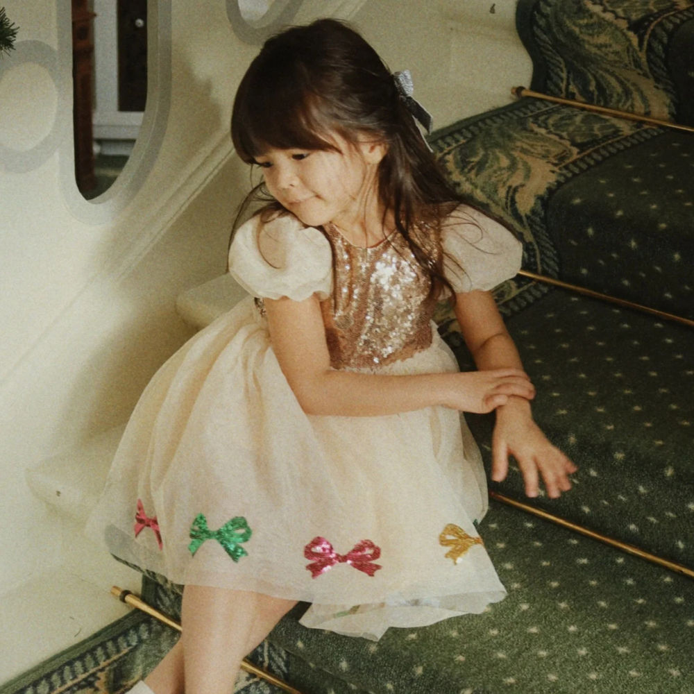 Rochie pentru copii cu partea de sus din paiete și fustă stratificată din tul de la Konges Slojd.