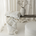 Fabricată din țesătură de bambus moale și plăcută la atingere, finisată cu bordură.