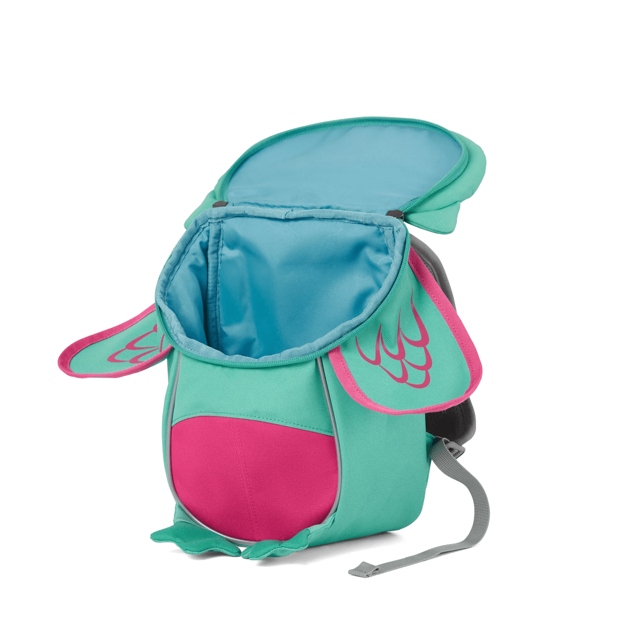 Rucsacul pentru grădiniță are curele de umăr reglabile, căptușite, care fac ca rucsacul să se potrivească confortabil pe umeri, iar benzile reflectorizante sporesc vizibilitatea copilului după lăsarea întunericului.