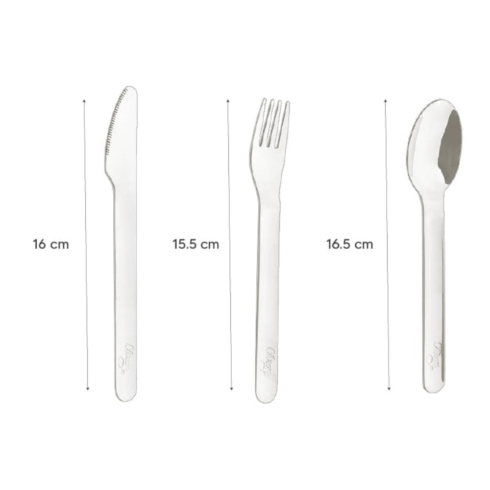 • Conținut: furculiță, cuțit, lingură