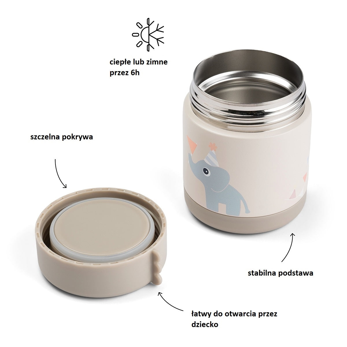 Datorită designului său inteligent, termosul pentru prânz pentru copii vă permite să păstrați mâncarea caldă timp de până la șase ore, asigurându-vă că micuțul dvs. mănâncă confortabil în orice moment al zilei.