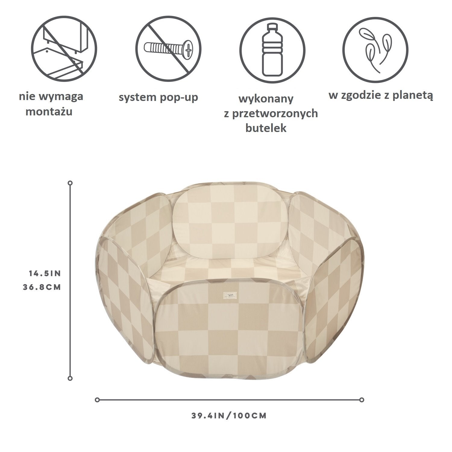Sistemul pop-up practic permite plierea și desfășurarea rapidă, iar dimensiunea mare permite până la doi copii să se joace împreună.