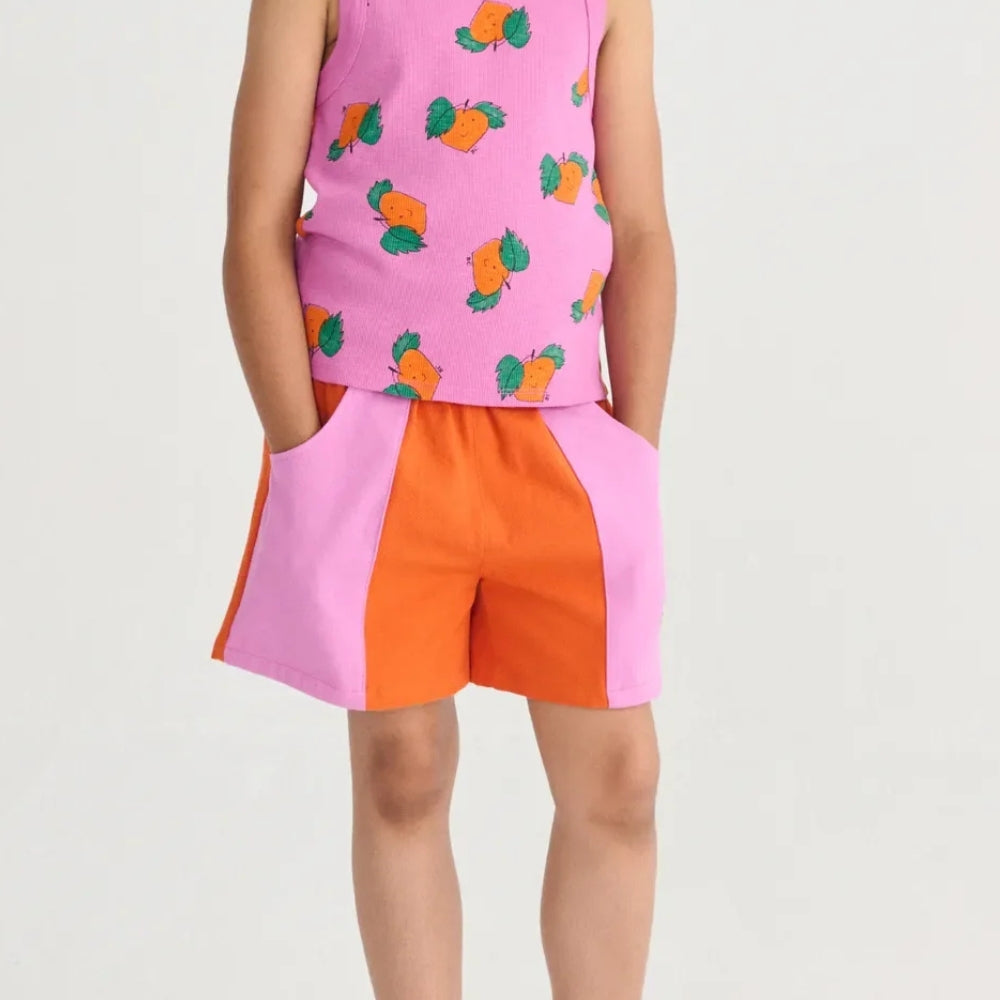 Combinația de culori roz și portocaliu este atrăgătoare și se potrivește perfect cu stilul de vară, în timp ce ajustarea croită face ca pantalonii scurți pentru fete să se potrivească perfect pe silueta copilului.