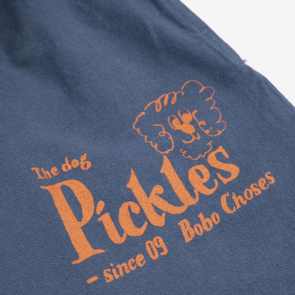 Culoarea albastru marin, combinată cu imprimeul distinctiv "Pickles the Dog", conferă aspectului general atingerea artistică unică pentru care brandul Bobo Choses este cunoscut.
