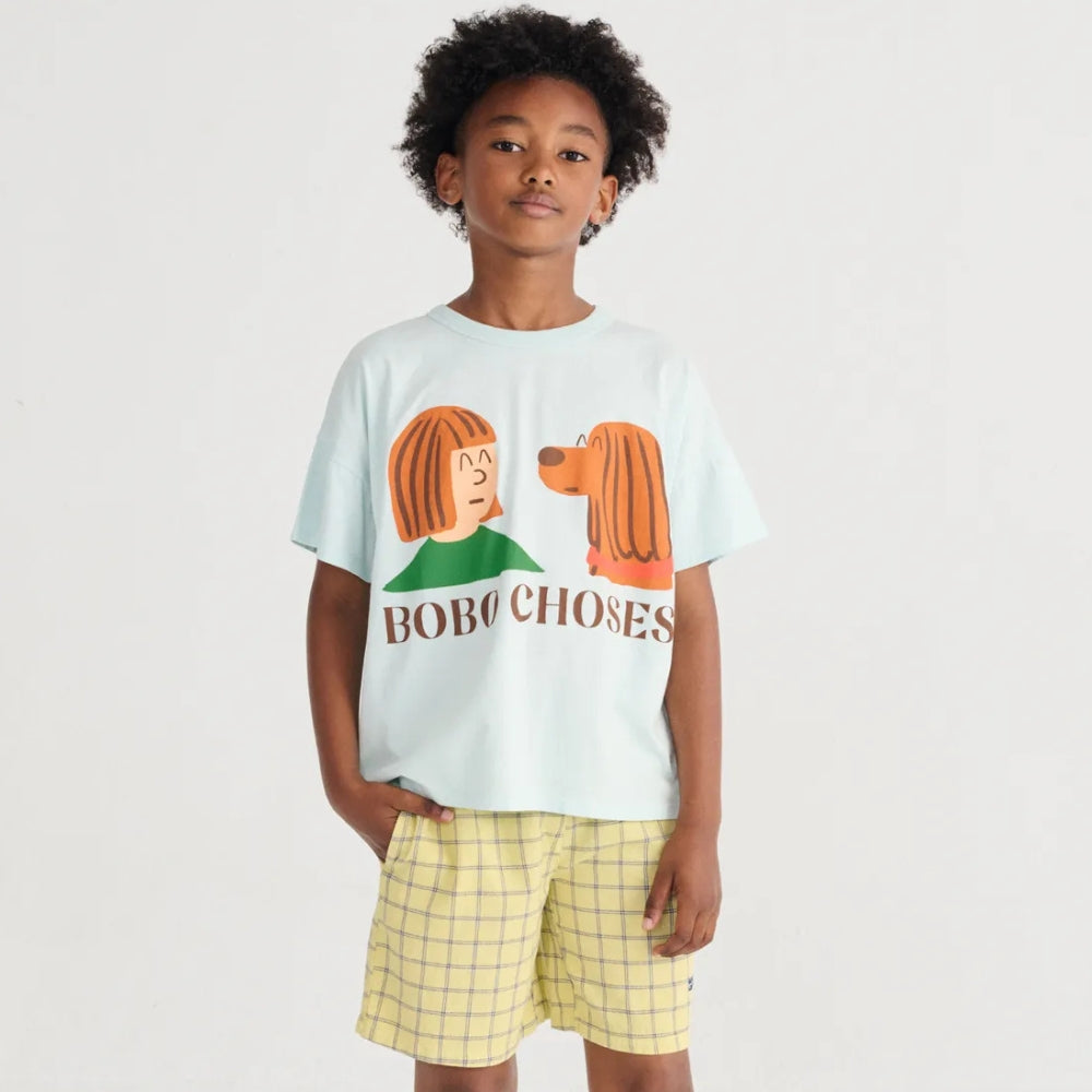 Croiala lejeră face tricoul pentru copii perfect pentru joacă, plimbări sau ieșiri în familie, în timp ce imprimeul câinelui prietenos îi conferă un aer ușor și vesel.