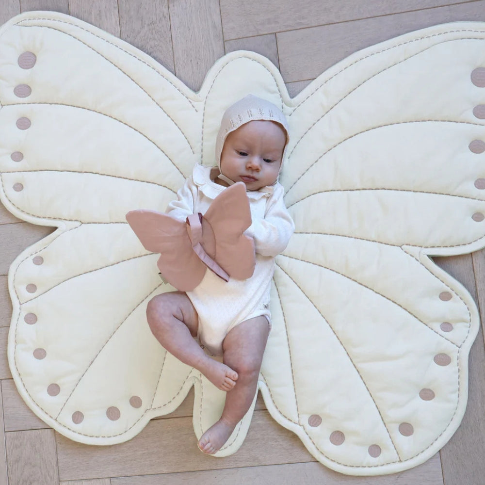 Covorașul pentru copii în formă de fluture de la Cam Copenhagen este un accesoriu frumos matlasat care aduce eleganță subtilă în casă.