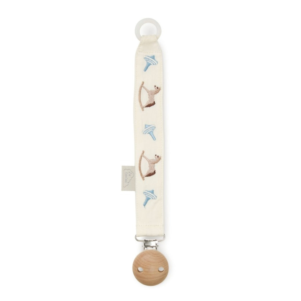 Pandantivul pentru tetină Cam Copenhagen se atașează ușor la hainele bebelușului cu o clemă sigură, asigurându-se că tetina rămâne curată și aproape de bebeluș, gata de utilizare.