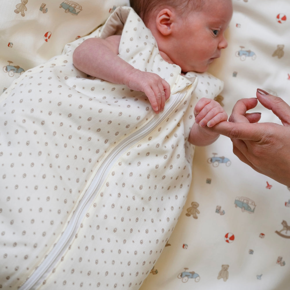 Datorită tăieturii rafinate, sacul de dormit pentru bebeluși sprijină mișcările naturale ale copilului, asigurând în același timp nivelul potrivit de căldură.