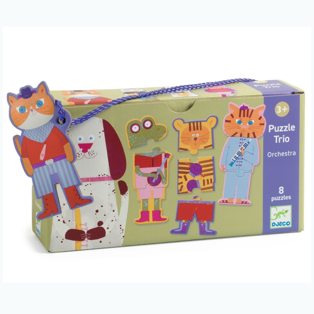Musical Jigsaw Puzzle de la Djeco este un set adorabil pentru cei mici, cu animale care cântă la diferite instrumente.