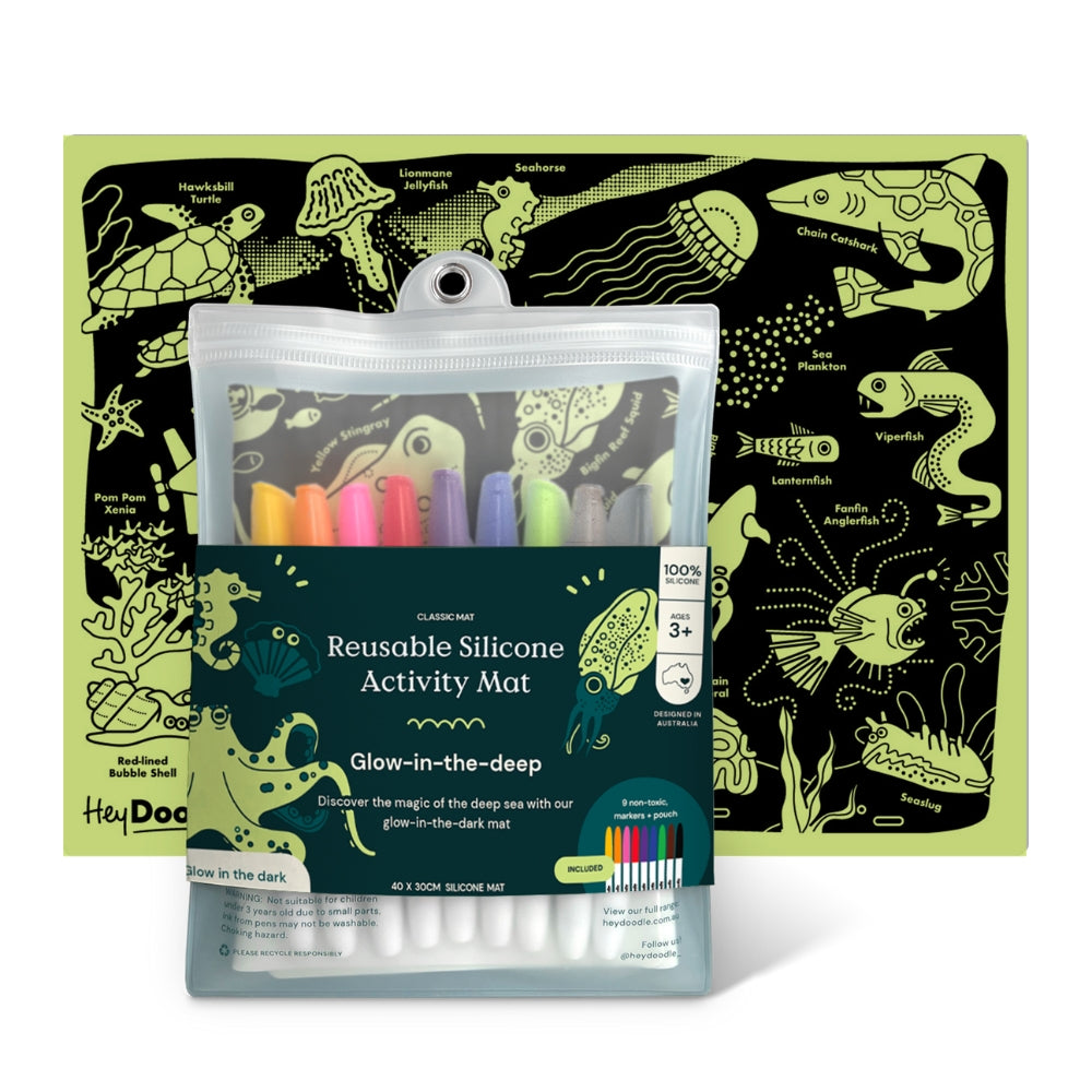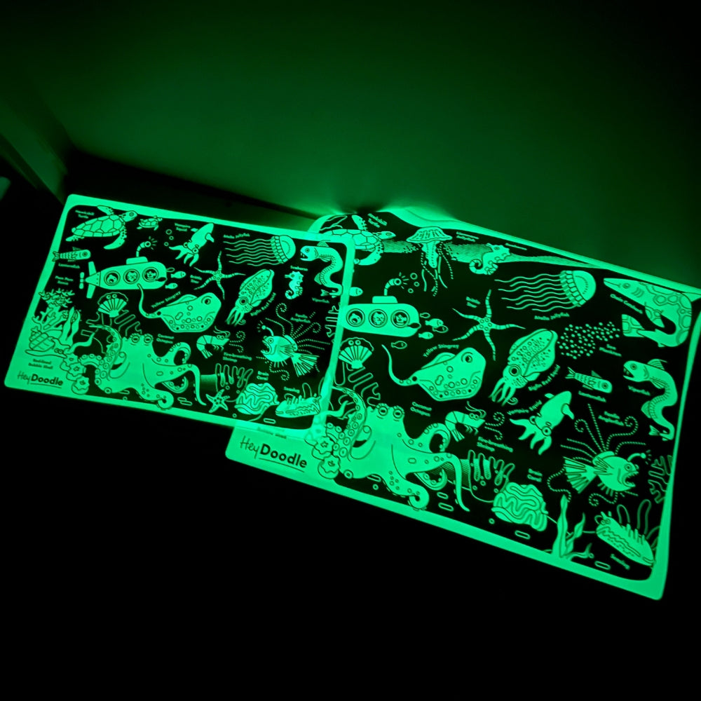 HeyDoodle Glow-in-the-Dark covor mare de colorat din silicon A3 - Sea Deeps