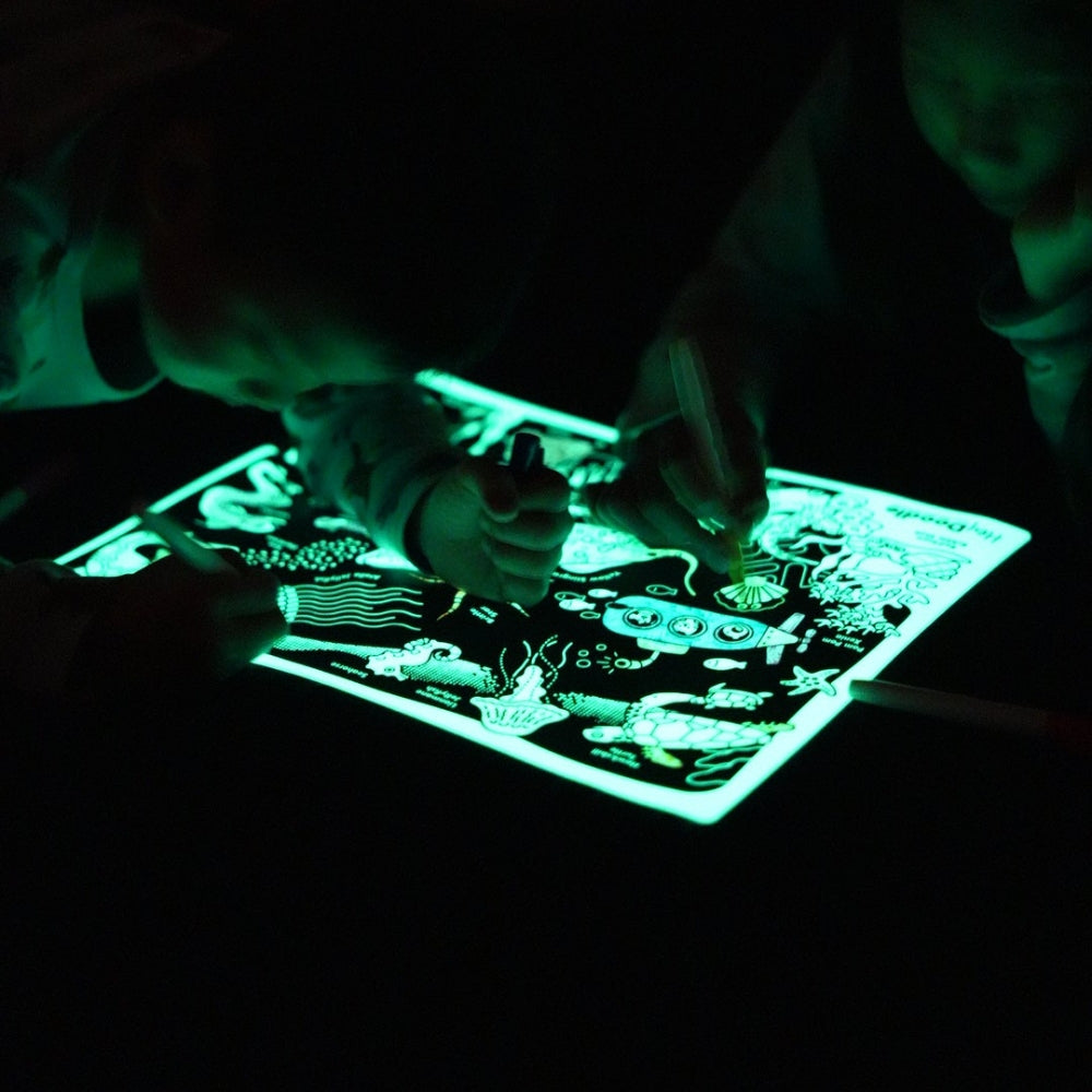 Acest lucru le permite celor mici să coloreze ore în șir, să descopere animale bioluminescente și să fie transportați în adâncurile oceanului cu fiecare desen.