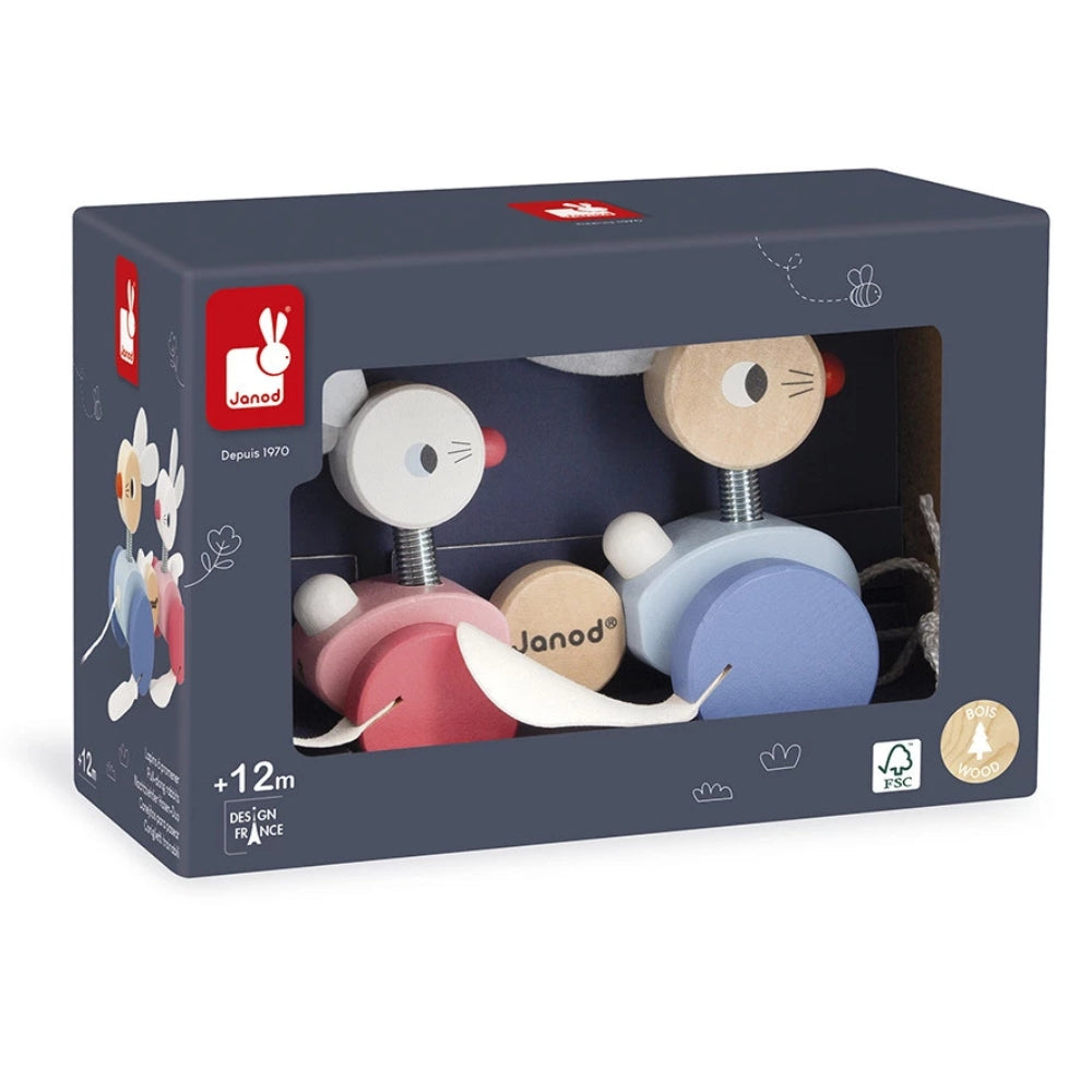 Jucăria de tras de la Janod va funcționa bine atât acasă, cât și la plimbări, când cel mic își conduce cu mândrie micii tovarăși.
