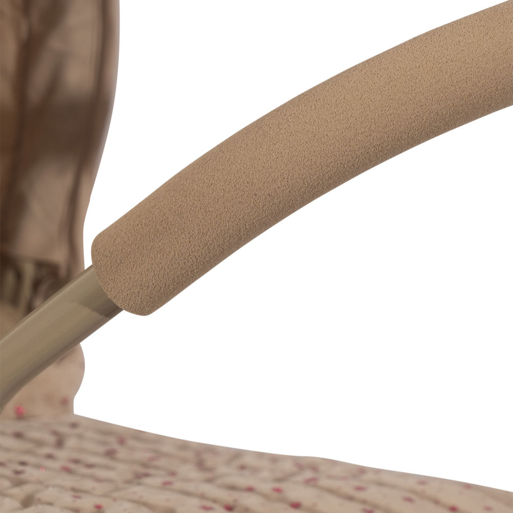 Konges Slojd a oferit un finisaj elegant: tulul matlasat, volanele delicate și o saltea moale în mijloc oferă păpușii un loc confortabil de odihnă.