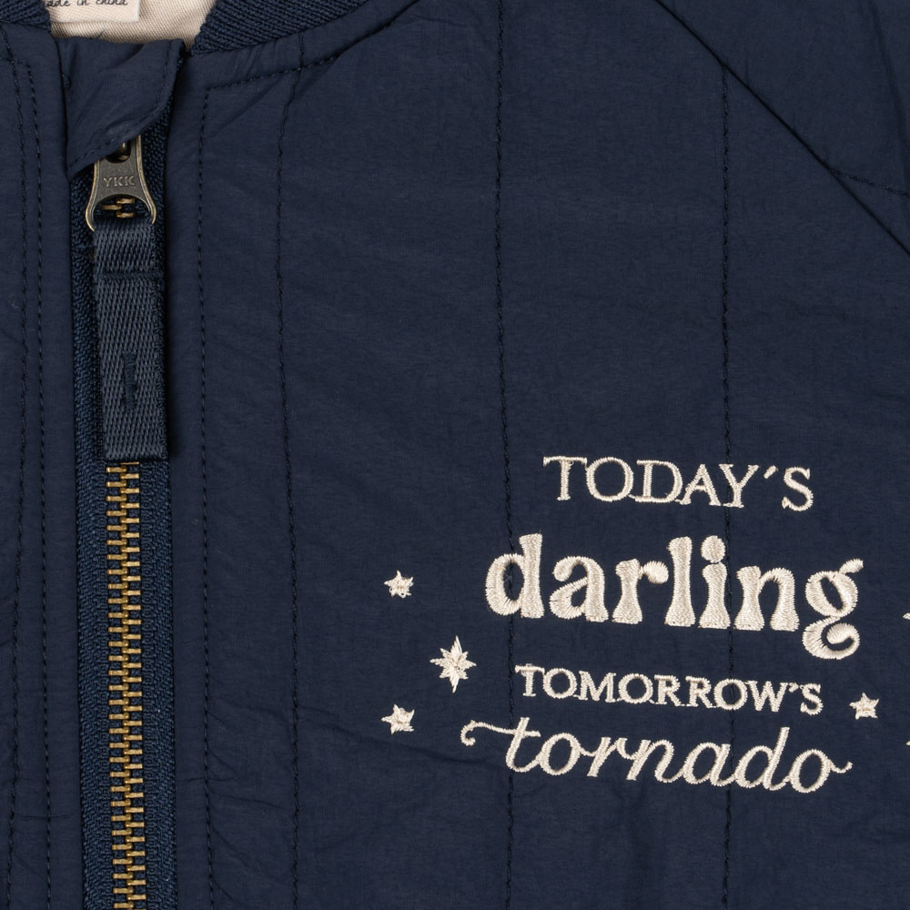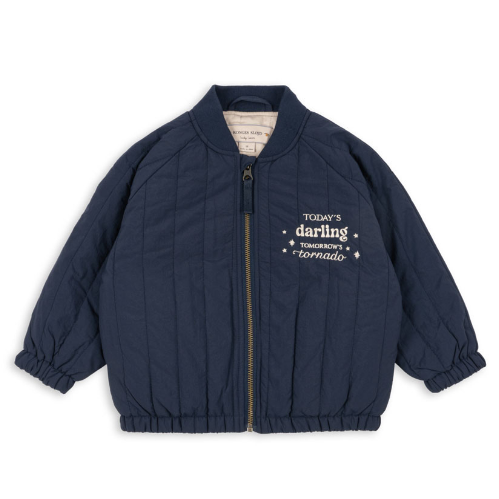 Jacheta bomber pentru copii Juno de la Konges Slojd este o jachetă termo ușoară cu umplutură din poliester care izolează eficient împotriva frigului, permițând în același timp pielii să respire.