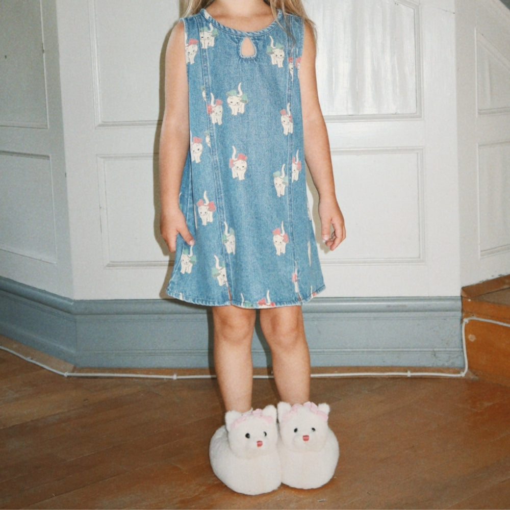 Finisajul moale și pufos menține picioarele calde și învelite în moliciune în orice moment, iar motivul jucăuș al pisicii va face atât copilul, cât și părinții să zâmbească.