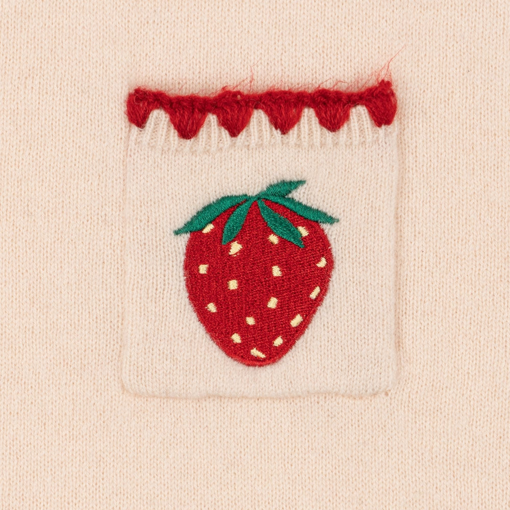 Broderia subtilă în formă de căpșuni adaugă farmec și o notă unică, în timp ce silueta dreaptă, ușor ajustată și buzunarele practice din față adaugă funcționalitate. Rochia Konges Slojd pentru fete a fost concepută cu gândul la purtarea de zi cu zi - este călduroasă, confortabilă și totuși plină de farmec feminin.