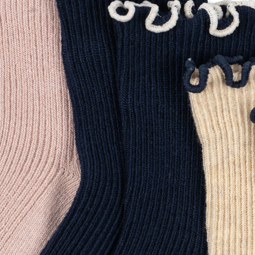 Konges Slojd Șosete pentru fete Frill Navy/Cream/Blush 3 pak