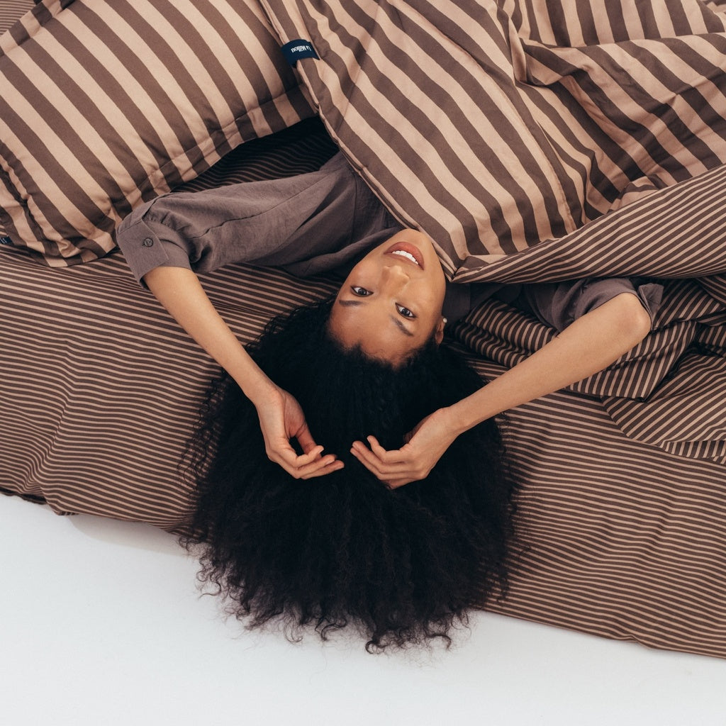 Frumoasă plapumă de bumbac pentru copii cu model Stripes Brown XL de la La Millou.