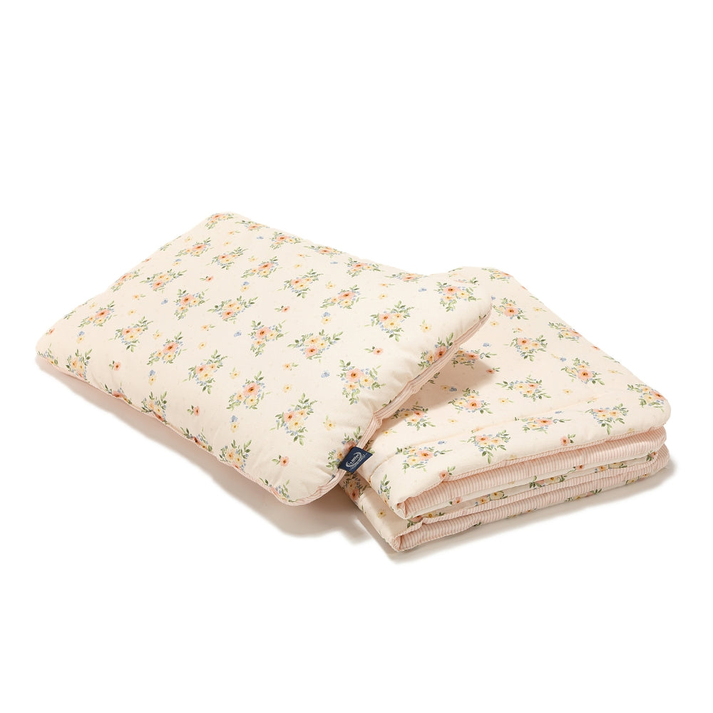 - Dimensiuni: plapumă: 140 x 110 cm, pernă: 60 x 40 cm