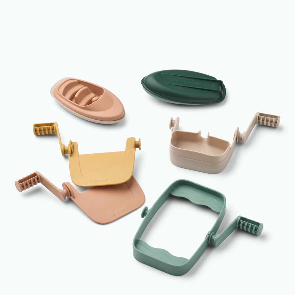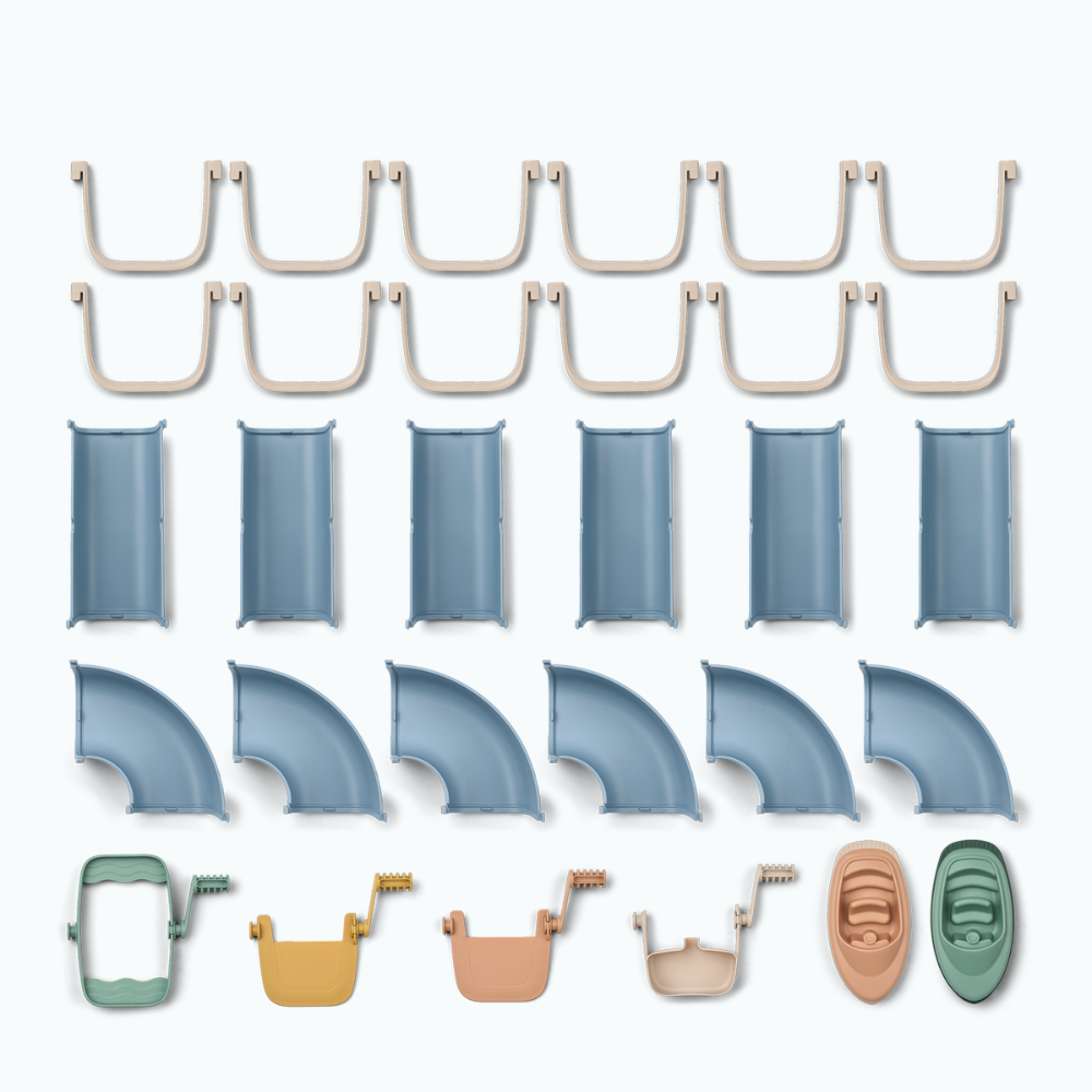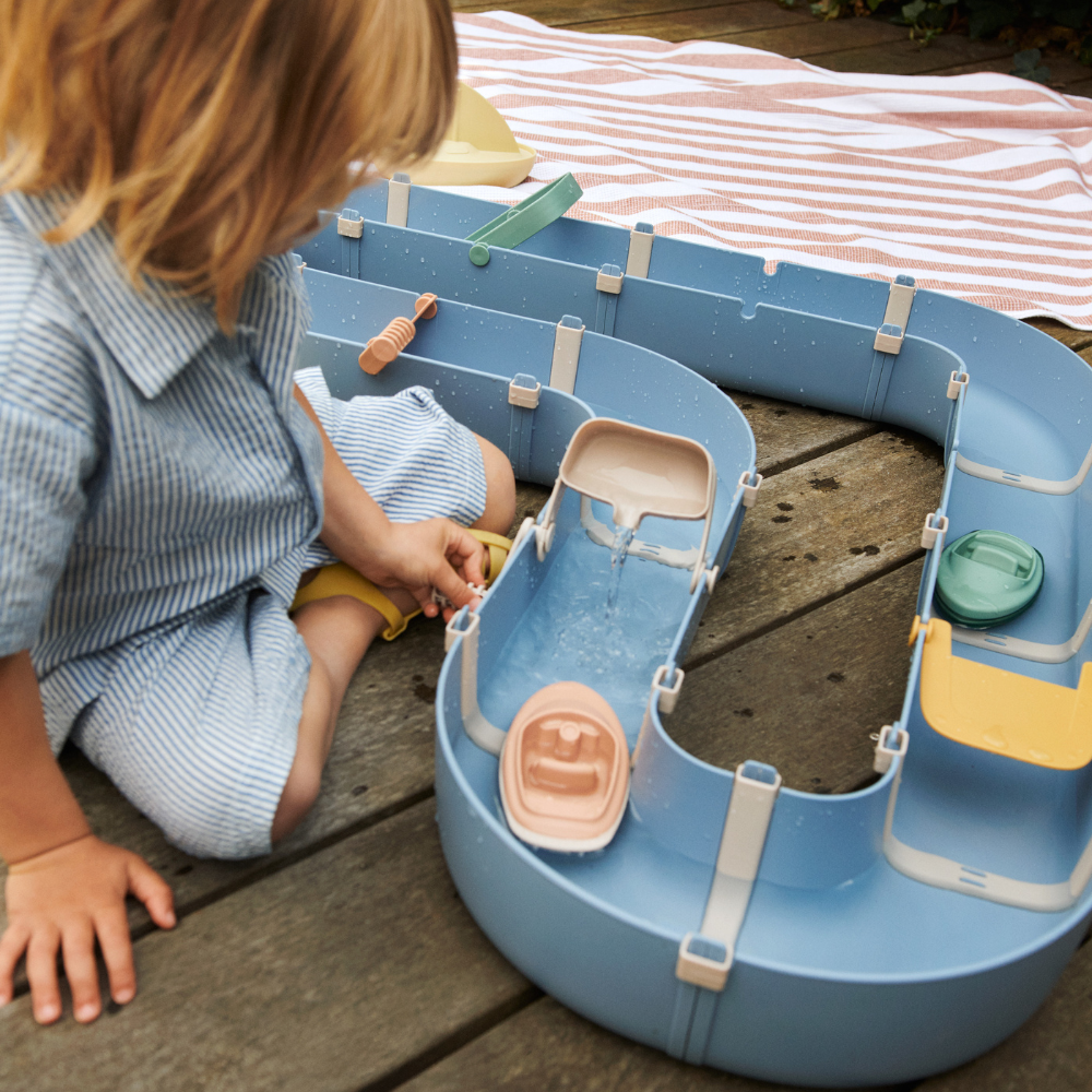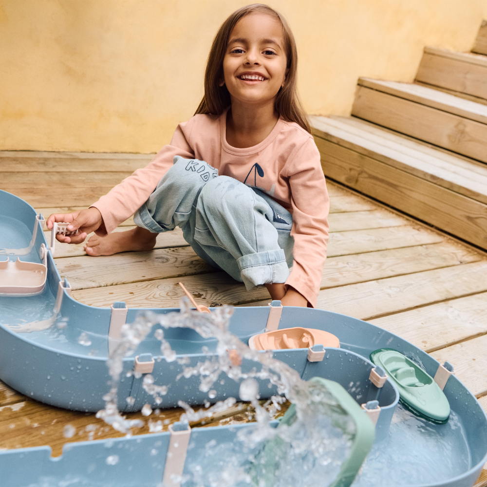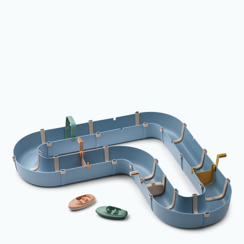 Setul Liewood include 2 bărci, o roată de apă, 2 baraje și un încărcător, astfel încât cei mici pot seta fluxul și își pot crea propriile povești.
